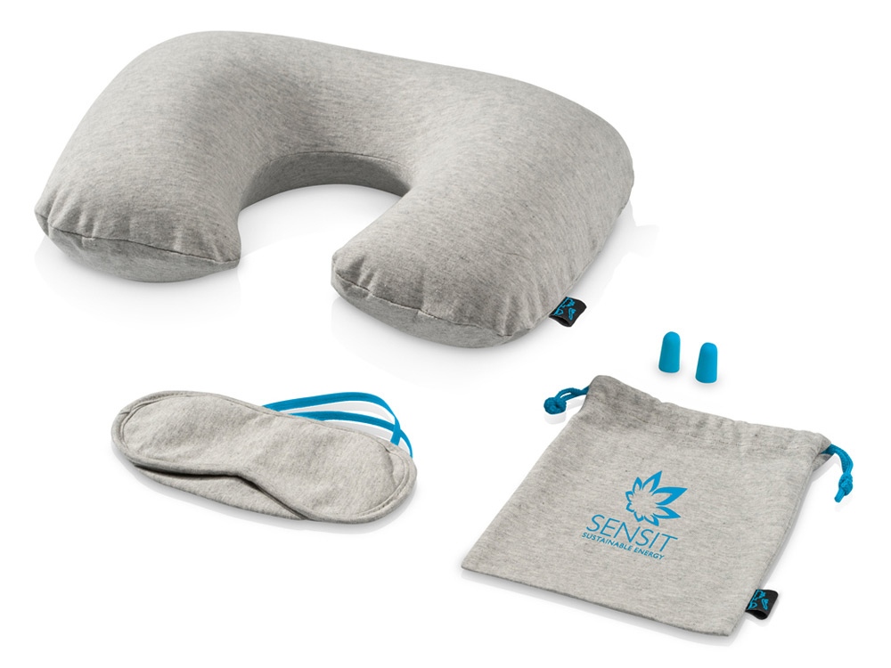 Дорожный набор Miami. Удобный дорожный набор включает надувную подушку с яркой молнией, маску для глаз с яркой резинкой и яркие беруши в мягком чехле с яркой кулиской. Джерси. Термотрансфер (1 цвет (цветные изделия)) на данный товар осуществляется бесплатно. Оплачивается только настройка оборудования в размере 10000 рублей на весь тираж.