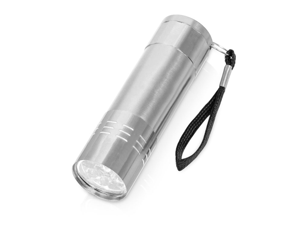 Стильный серебристый фонарик Scotty изготовлен из легкого алюминия. 9 Светодиодов позволяют создать достаточно яркое точечное освещение, шнурок входит в комплект. Работает на стандартных батарейках AAA (в комплект не входят). Гравировка (оптоволоконный лазер) (Без чернения) на данный товар осуществляется бесплатно. Оплачивается только настройка оборудования в размере 2700 рублей на весь тираж.