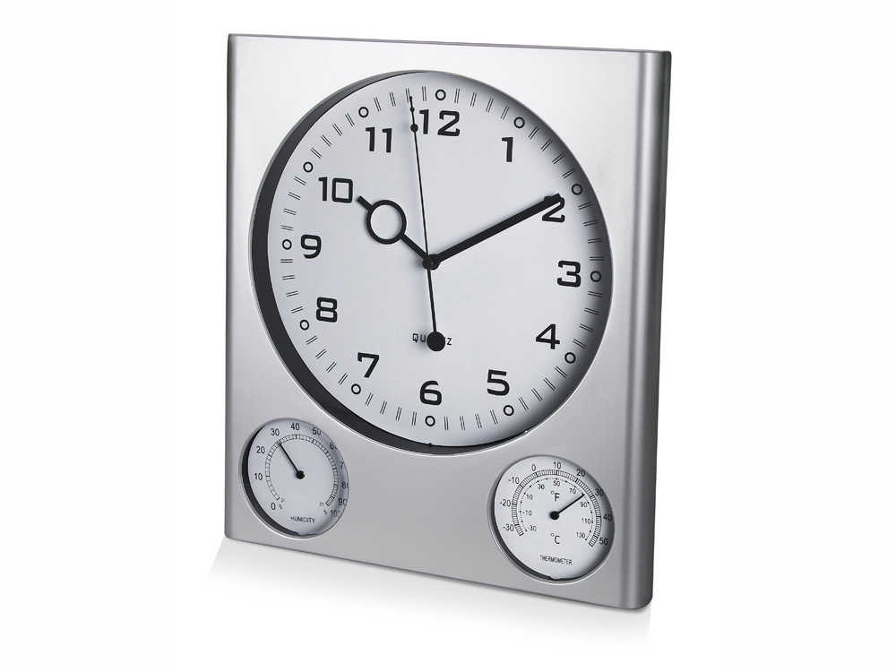 Стильная настенная метеостанция дополнит любой интерьер, придав ему неповторимость. Благодаря погодной станции вы всегда будете знать какой микроклимат в помещении. Необычный и очень полезный подарок для руководителей. Погодная станция настенная: часы, термометр, гигрометр Тампопечать (1 цвет (цветные изделия)) на данный товар осуществляется бесплатно. Оплачивается только настройка оборудования в размере 4500 рублей на весь тираж.