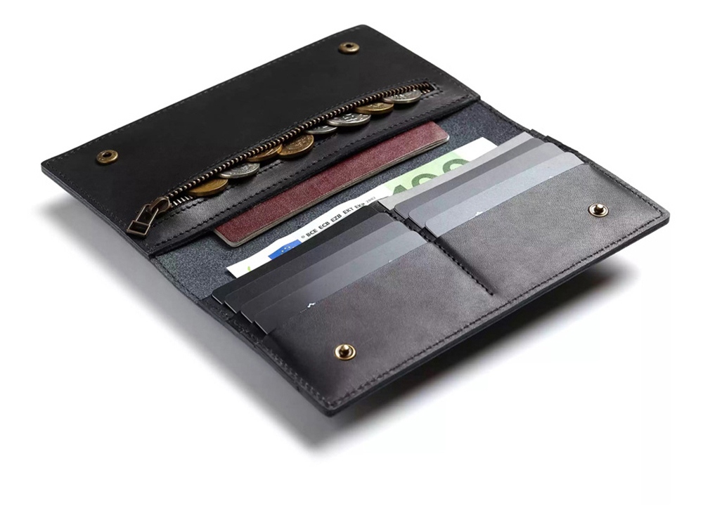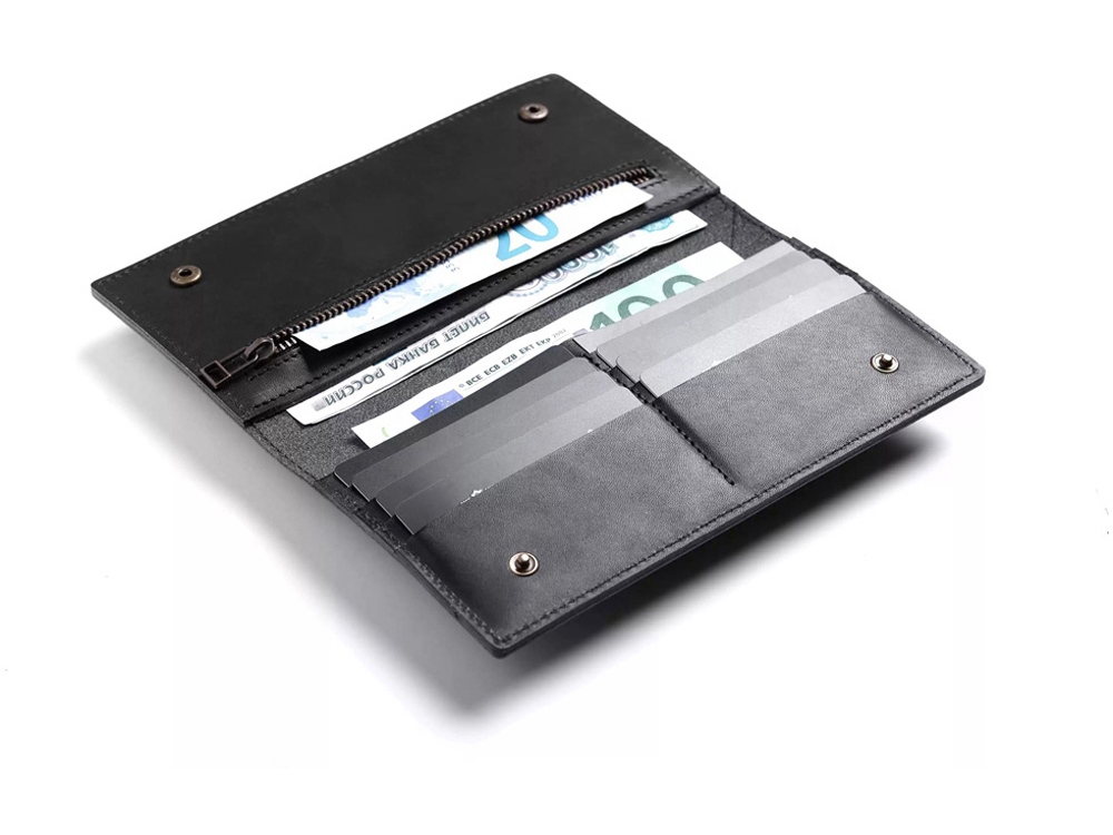 В меру строгий и универсальный, этот кошелек будет верным решением для людей, привыкших носить всё своё при себе.