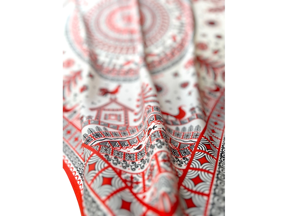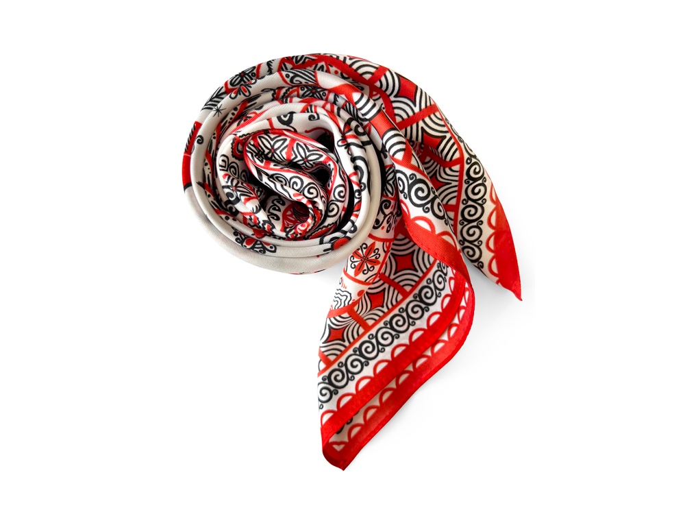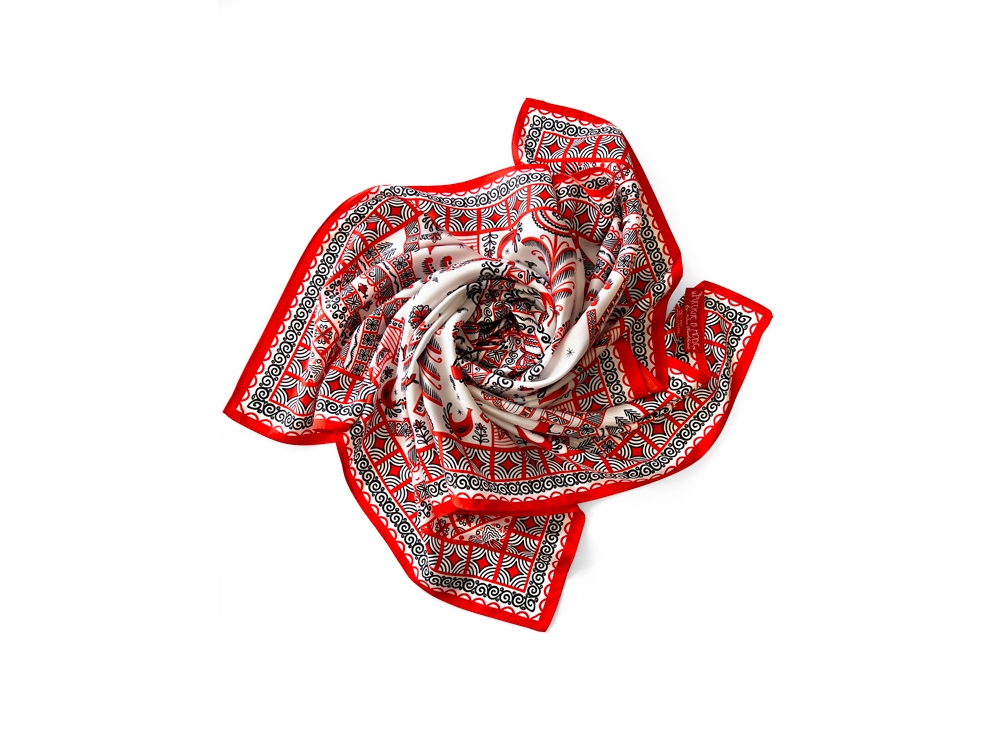 Шелковый аксессуар с красно-черной древней росписью и откликами русской истории гармонично дополнит собой элегантный наряд, станет роскошным оберегом для Вас! Он эффектно завершит образ, расставит недостающие акценты и подчеркнет Вашу уникальную красоту!