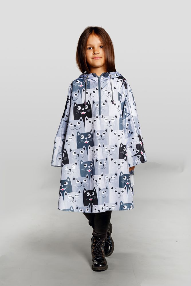 Легкий городской дождевик-пончо с регулируемым капюшоном из влагоустойчивого материала подходит для защиты в непогоду, свободно одевается поверх одежды и небольшого рюкзака.