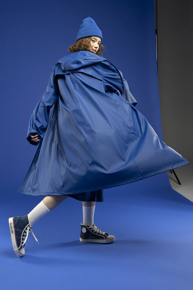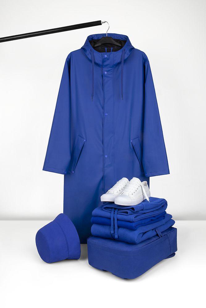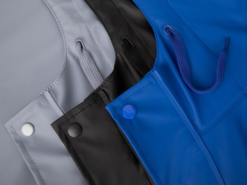 Плащ-дождевик с капюшоном из полиэстера с полиуретановым непромокаемым покрытием.