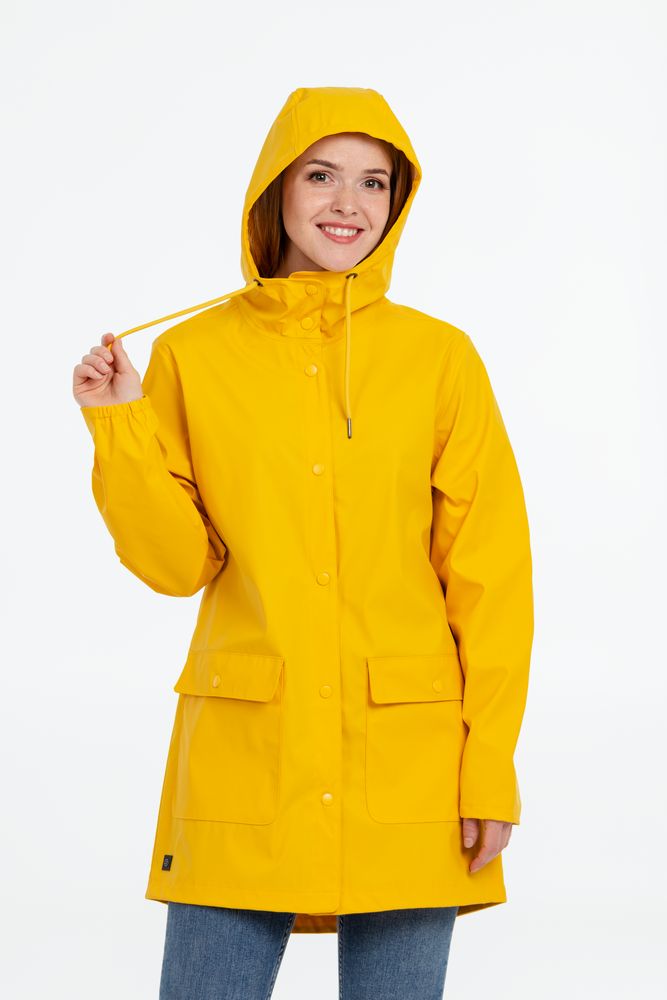 Стильный и практичный женский дождевик на кнопках из матового водонепроницаемого и ветрозащитного материала. Благодаря сварке ультразвуком швы абсолютно водостойкие. Карманы защищены от дождя накладными клапанами.