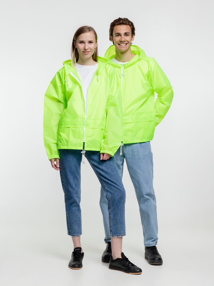 Укороченный дождевик свободного кроя из ткани таффета с влагозащитным покрытием. Складывается в мешочек — удобно брать с собой.
