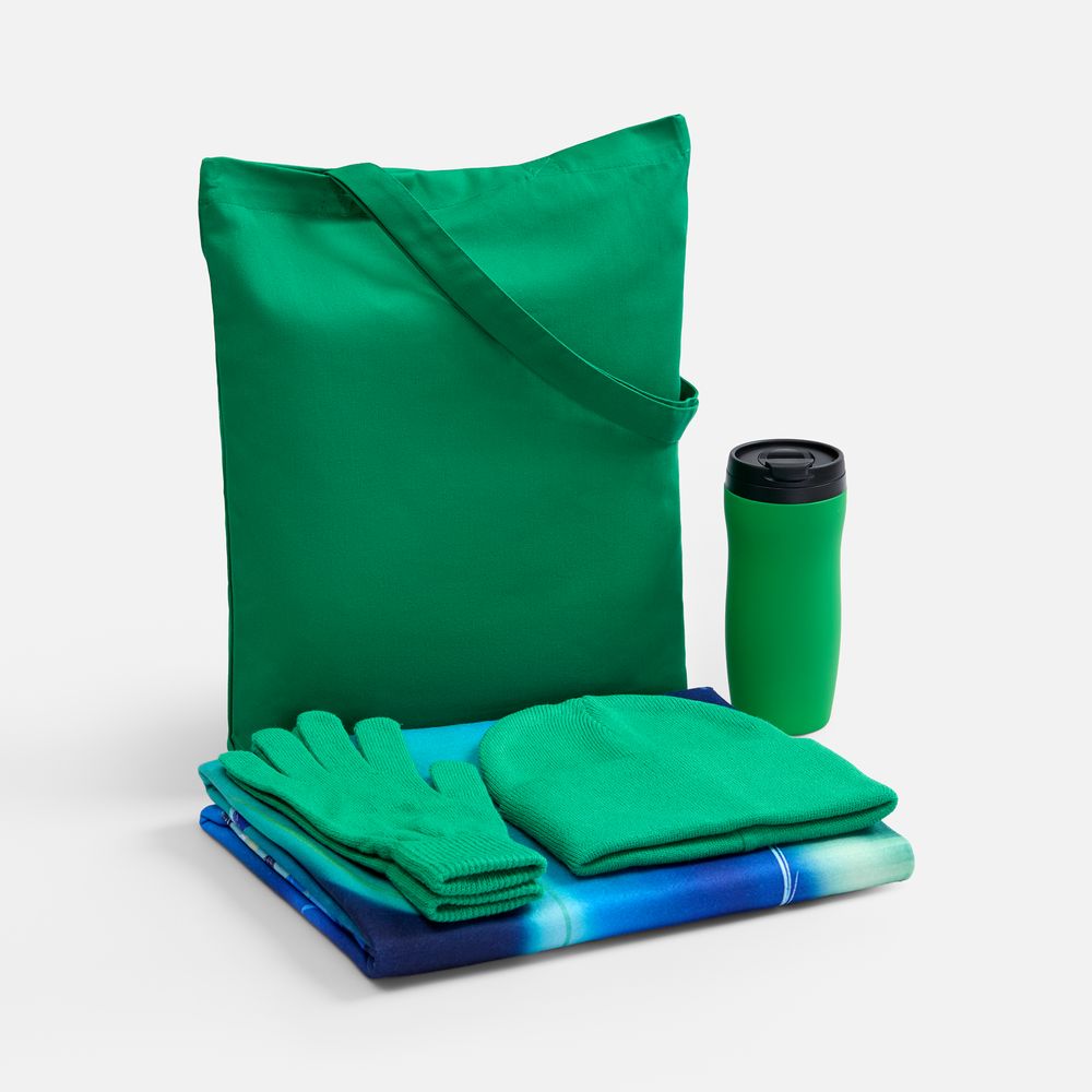 Набор «Северное сиятельство» — это выражение заботы и нетривиальный комплимент в одном шопере! В нем тонко переплетены дух современного города и очарование северной сказки. Его элементы лаконичны и функциональны, а главная изюминка — живописный плед с изображением aurora borealis — добавляет ноту настоящего чуда.