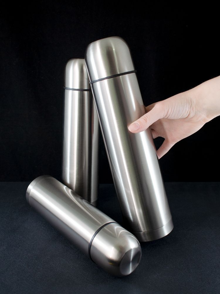Двухслойная вакуумная конструкция из нержавеющей стали с завинчивающейся пробкой с клапаном.