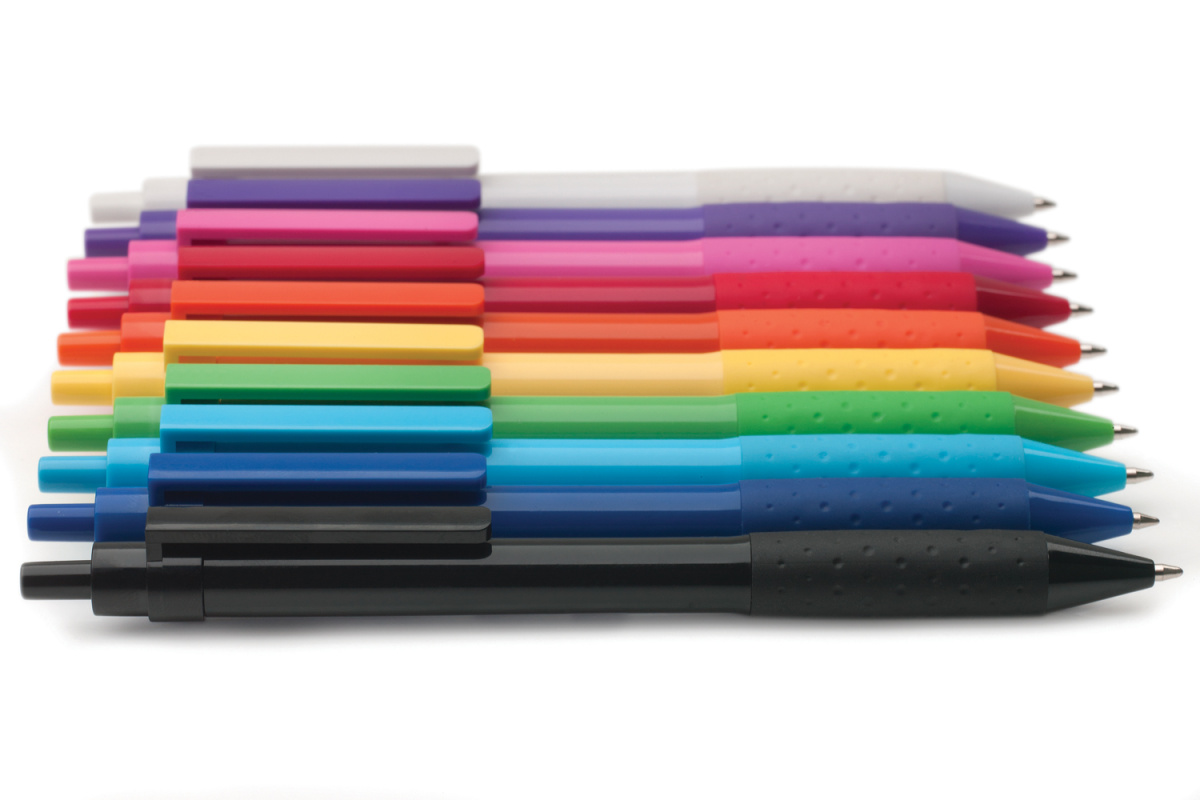 Пластиковая шариковая ручка X2 с кнопочным механизмом. В ручке установлен синий шариковый стержень превосходного немецкого качества, что делает письмо мягким, а использование ручки невероятно комфортным. Одного стержня хватит, чтобы прочертить линию длиной 1200 м. Зарегистрированный дизайн ®.