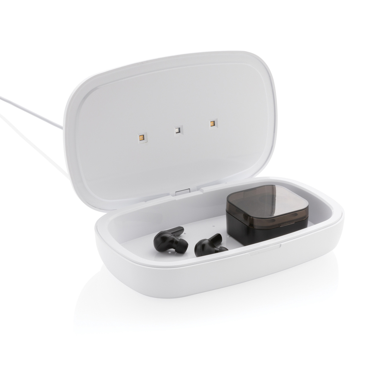 Многофункциональный стерилизатор UV-C, который уничтожает до 99,9% бактерий. Просто положите в устройство наушники, украшения, часы или защитную маску, чтобы стерилизовать их при помощи технологии UV-C. Вы можете провести быструю очистку за 90 секунд или полную стерилизацию за 5 минут. Лампы внутри устройства нетоксичны и не содержат ртути в отличие от большинства ультрафиолетовых ламп на рынке. Стерилизатор оснащен функцией автоматического отключения при открывании крышки, чтобы защитить вас от воздействия ультрафиолетового излучения. Лампы рассчитаны на работу до 10 000 часов. На крышке стерилизатора расположено устройство для беспроводной зарядки смартфонов, мощность 5 Вт. В комплекте есть метровый кабель Type-C (TPE без ПВХ). Вход: 5 В / 2 А; Выход: 5/1 А, 5 Вт.<p>
