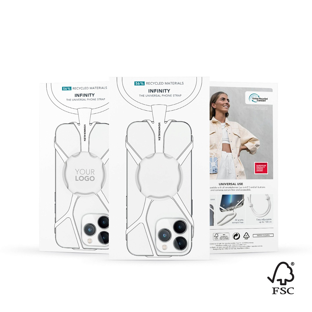 Универсальный ремешок-держатель VONMAHLEN Infinity совместим со всеми популярными моделями смартфонов. Его можно прикрепить всего за несколько секунд даже поверх чехла. Infinity сочетает элегантность и функциональность: интеллектуальный дизайн и полностью регулируемый нейлоновый шнур делают его по-настоящему идеальным аксессуаром. Гибкий силикон гарантирует, что ваш телефон всегда надежно закреплен. Ремешок-держатель не ограничивает использование кнопок или функций на телефоне.