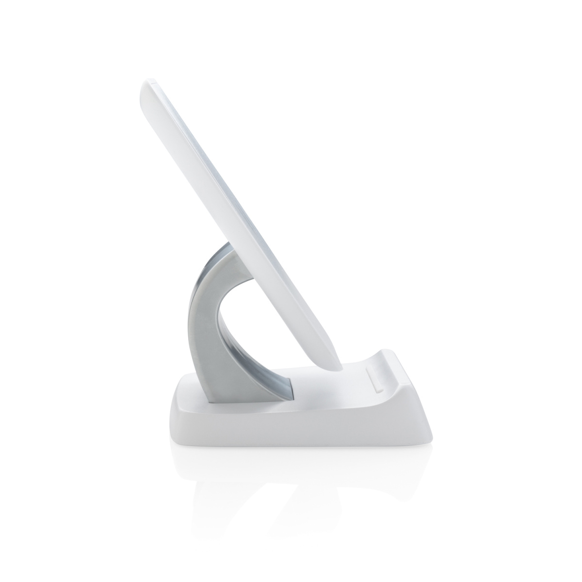 Эта док-станция с функцией беспроводной зарядки заряжает в 2 раза быстрее, чем большинство беспроводных зарядных устройств. Корпус устройства сделан из высококачественного пластика ABS и представляет собой основание на алюминиевой ножке. В устройстве использовано две катушки, что обеспечивает максимально эффективную и быструю зарядку любых смартфонов. Смартфон можно комфортно подзарядить как в горизонтальном, так и в вертикальном положении. Док-станция может использоваться для работы с любыми мобильными девайсами, поддерживающими стандарт Qi*, такими как устройства Android последнего поколения и iPhone 8 или выше. В комплекте идет USB кабель длиной 1,5 метра. Напряжение на входе: 5/2A. Напряжение на выходе: 5V/1A. Напряжение на входе при быстрой зарядке: 9V 1.67A. Напряжение на выходе при беспроводной зарядке: 9V 1.1A. *Qi — стандарт, разработанный Консорциумом беспроводной электромагнитной энергии для индукционной передачи энергии на расстояние до 4 см.