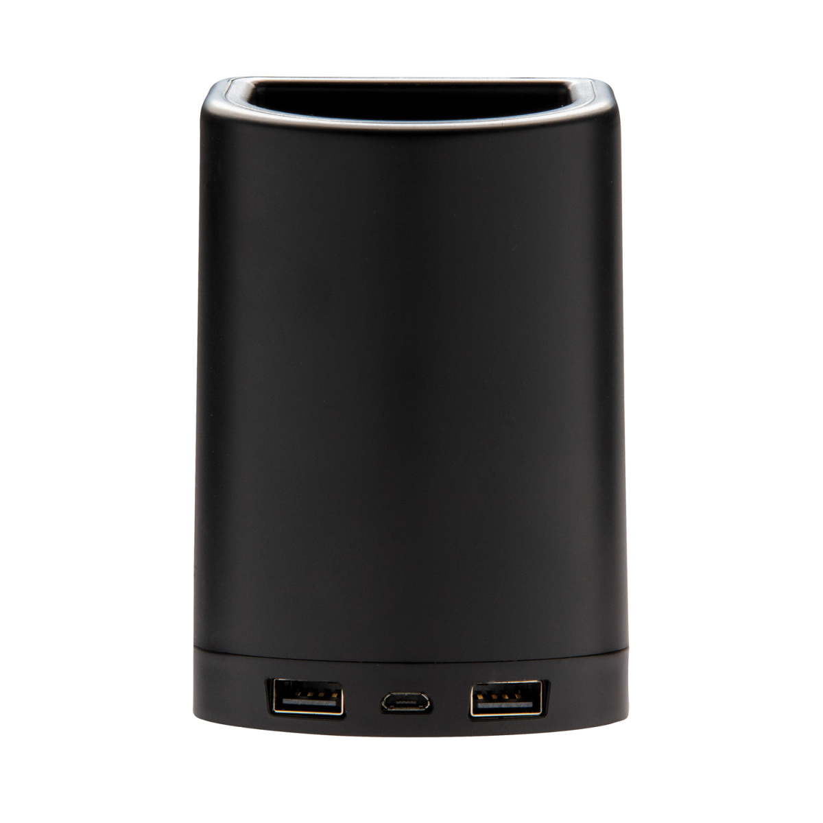 Зарядите свой телефон с этим удобным аксессуаром 2 в 1 с функцией беспроводной зарядки и подставки для ручек. Просто поместите свое мобильное устройство на поверхность док-станции, и оно автоматически начнет заряжаться. Благодаря необычному дизайну корпуса выгравированный на нем логотип будет подсвечиваться, делая ваш бренд максимально заметным. Подставка для ручек прекрасно подойдет для хранения мелких предметов и поможет поддерживать чистоту и порядок на рабочем столе. Док-станция может использоваться для работы с любыми мобильными девайсами, поддерживающими стандарт Qi*, такими как устройства Android последнего поколения и iPhone 8 или выше. В комплекте идет USB кабель длиной 1,5 метра. Напряжение на входе: 5V/3A. Напряжение на выходе: 5V/1A 5W. *Qi — стандарт, разработанный Консорциумом беспроводной электромагнитной энергии для индукционной передачи энергии на расстояние до 4 см.