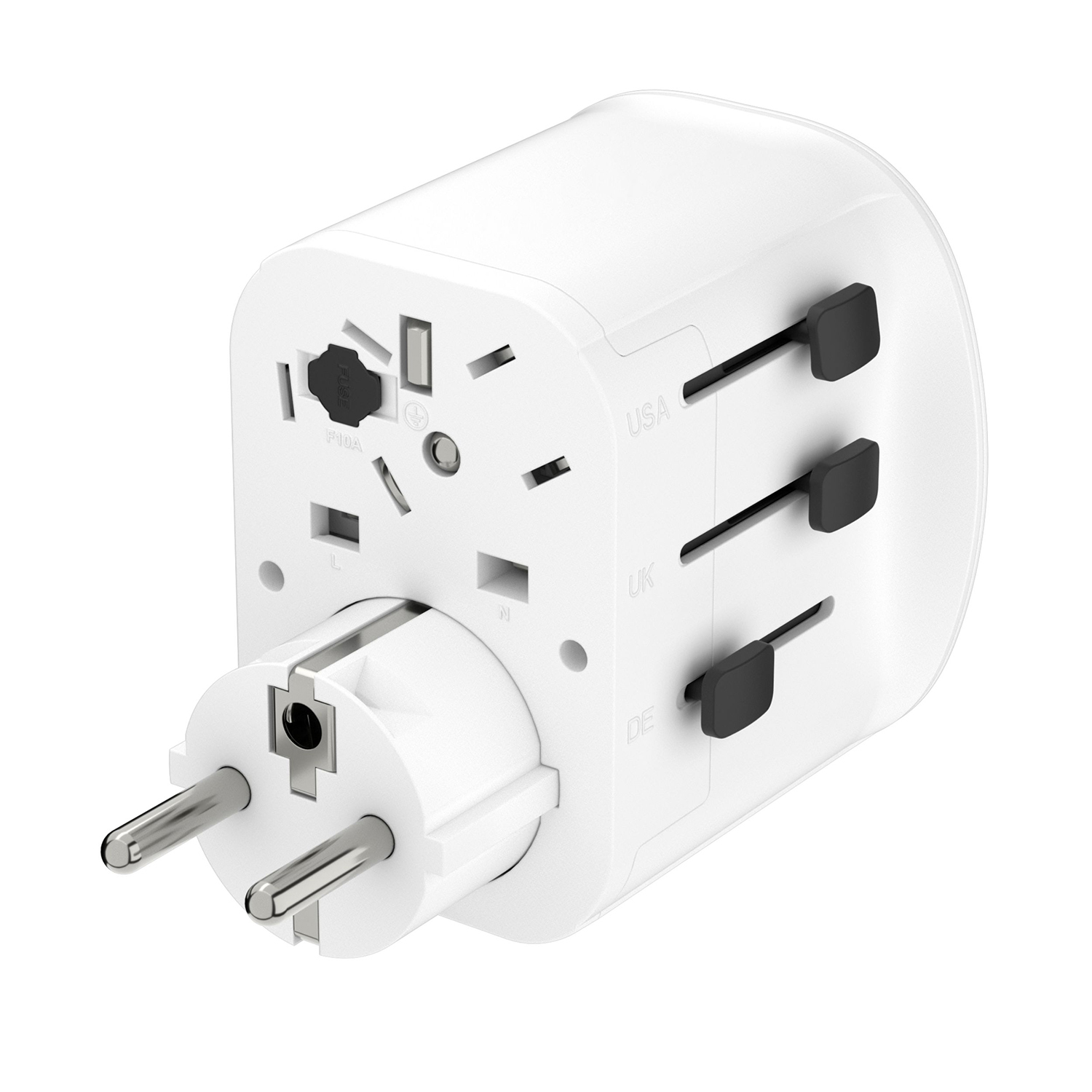 VONMAHLEN Unity One — это компактное дорожное зарядное устройство и идеальный спутник, куда бы вы ни отправились. Адаптер совместим с розетками более чем в 150 странах. Мощность до 2300 Вт, два порта USB-A и один порт USB-C (15 Вт) позволяют заряжать несколько устройств одновременно. В VONMAHLEN Unity One встроена защита от перегрузки и короткого замыкания. Это идеальный вариант для быстрой зарядки смартфонов, ноутбуков, фотоаппаратов, бритв и многого другого. Продуманный дизайн выдвижных частей адаптера делает VONMAHLEN Unity One простым и удобным в транспортировке.