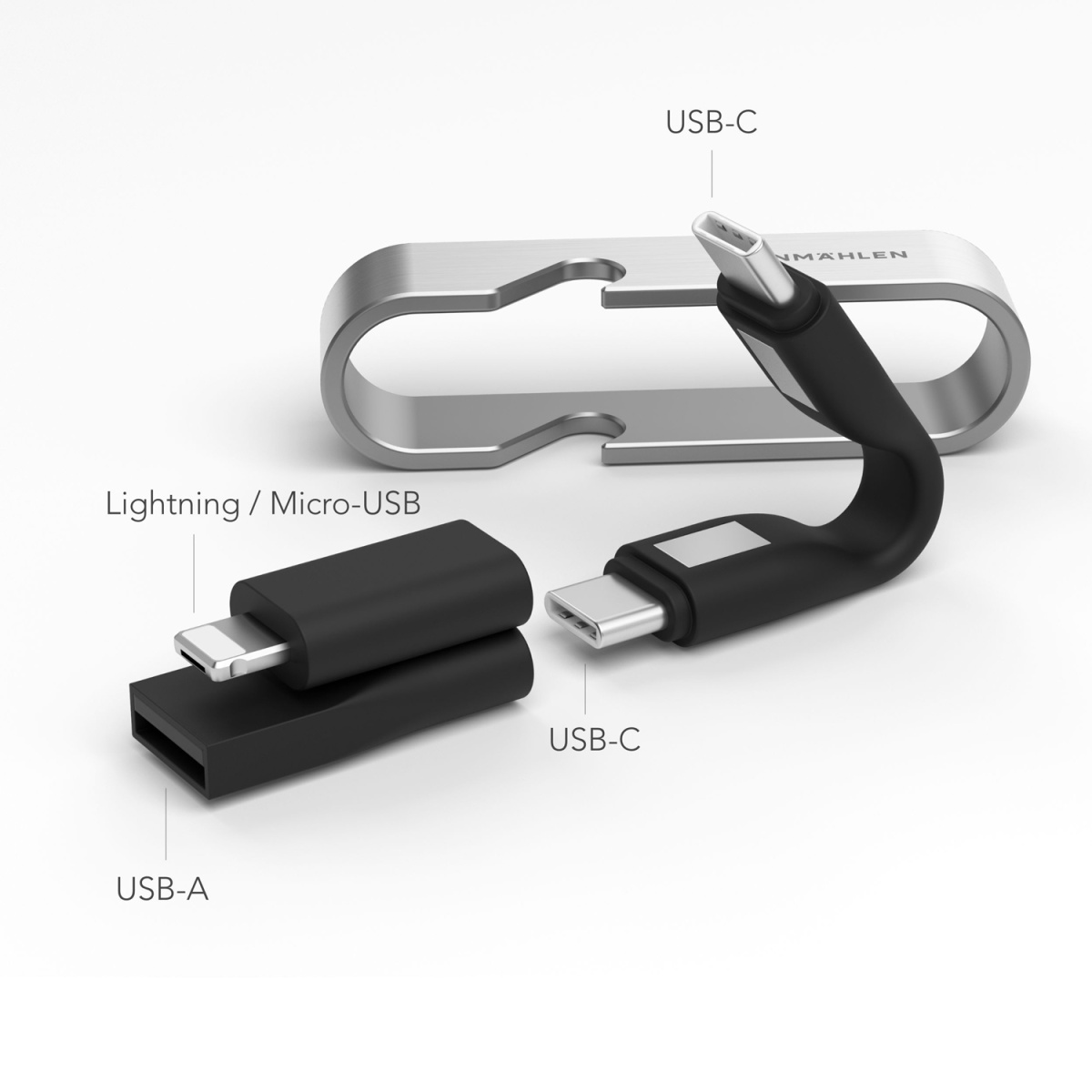 Универсальный кабель VONMAHLEN High Six 6 в 1 поддерживает быструю зарядку гаджетов (до 3 А). Один кабель — шесть различных вариантов подключения: USB-C/USB-C, USB-A, Micro-USB и Lightning. High Six выполнен в минималистичном дизайне. Это компактный аксессуар, который можно брать с собой куда угодно. Корпус из нержавеющей стали может выступать в роли открывалки для бутылок. Скорость зарядки — до 60 Вт (3 А). Скорость передачи данных — 480 Мбит/с.