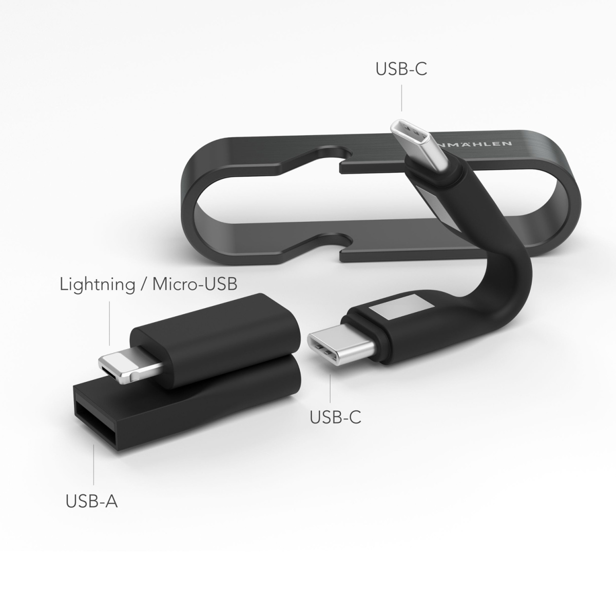 Универсальный кабель VONMAHLEN High Six 6 в 1 поддерживает быструю зарядку гаджетов (до 3 А). Один кабель — шесть различных вариантов подключения: USB-C/USB-C, USB-A, Micro-USB и Lightning. High Six выполнен в минималистичном дизайне. Это компактный аксессуар, который можно брать с собой куда угодно. Корпус из нержавеющей стали может выступать в роли открывалки для бутылок. Скорость зарядки — до 60 Вт (3 А). Скорость передачи данных — 480 Мбит/с.