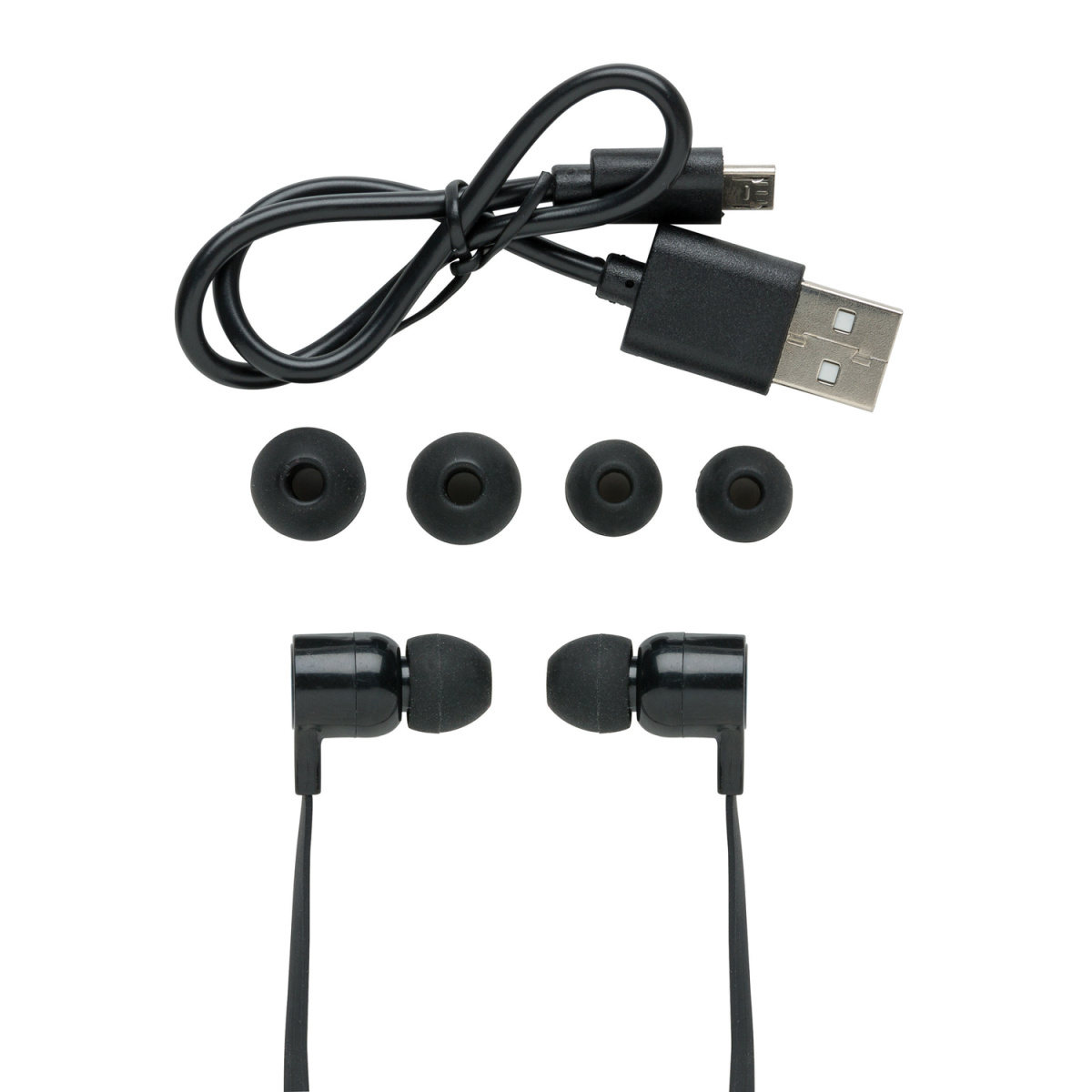 Беспроводные наушники изготовлены из материала TPE и дополнены встроенным аккумулятором емкостью 55 мАч, который позволяет слушать музыку до 3 часов на одном заряде. BT 4.0 обеспечивает отличное соединение на расстоянии до 10 метров. В комплекте идут три пары ушных вкладышей разного размера и кабель micro-USB.