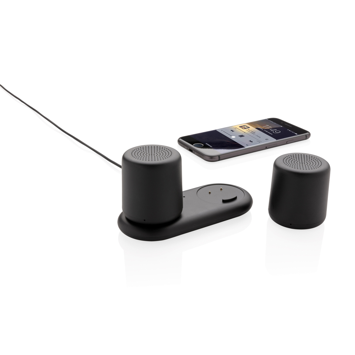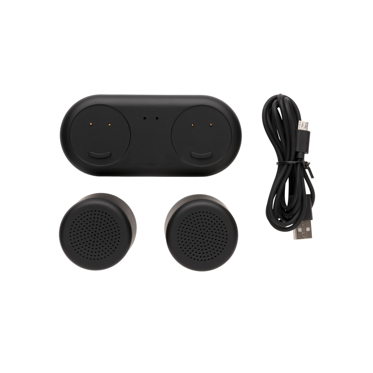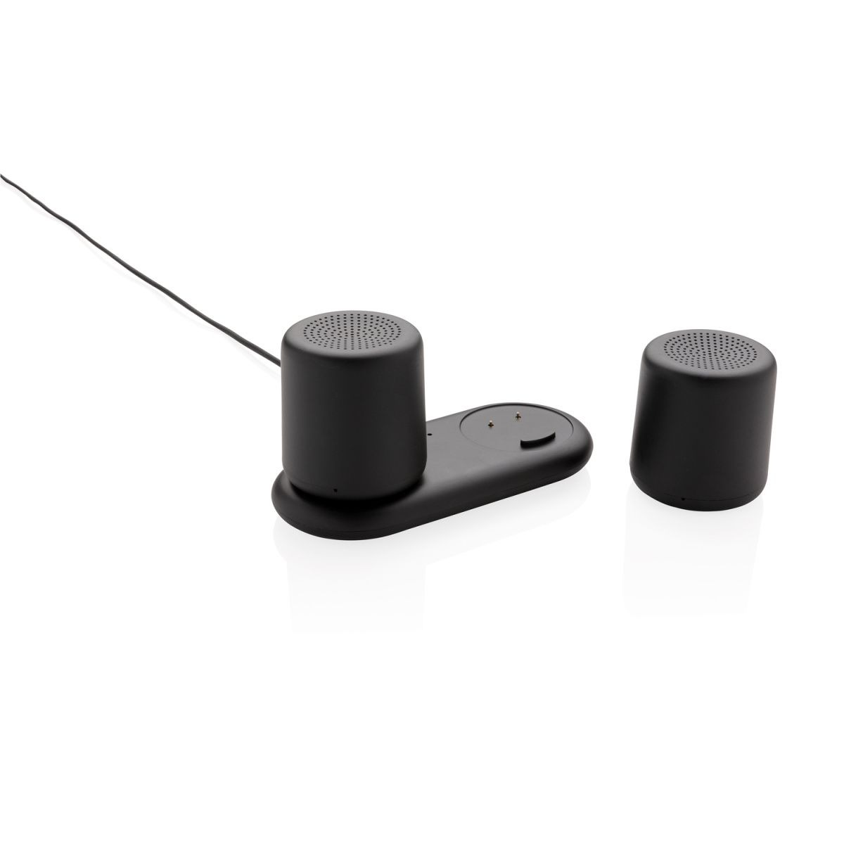 Беспроводные парные колонки с динамиками по 3 Вт каждая порадуют вас не только превосходным звуком, но и легкой зарядкой. Разместите колонки там, где вам больше всего хочется насладиться качественным звуком любимой музыки. Динамики выполнены из прочного ABS-пластика, их легко заряжать, просто разместив на базу для зарядки. Нет необходимости подключать какие-либо провода! Ёмкость каждой колонки 300 мАч, что позволяет им беспрерывно работать до 2 часов. Наличие Bluetooth версии 4.2 обеспечит стабильное подключение на расстоянии до 10 метров. В комплекте идет micro USB кабель длиной 120 см для постоянного питания базы.