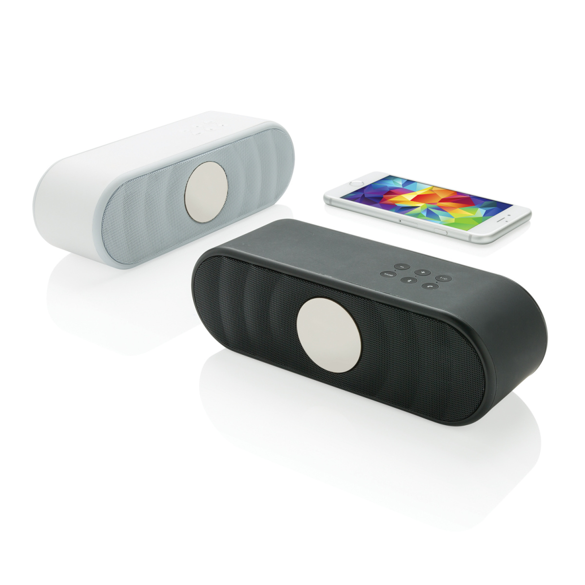 Стильная беспроводная колонка Flow с резиновым напылением порадует не только слух, но и взгляд. На стильном корпусе расположено 6 кнопок: включение / выключение, регулировка громкости, прием звонков и кнопка выбора различных режимов настройки частот. На нижней панели предусмотрены две полосы для хорошего сцепления с поверхностью и отличного качества звука. Встроенного аккумулятора емкостью 1200 мАч хватает на 10 часов работы. На колонке также есть стандартный аудио-разъем jack для подключения к телефону или компьютеру.