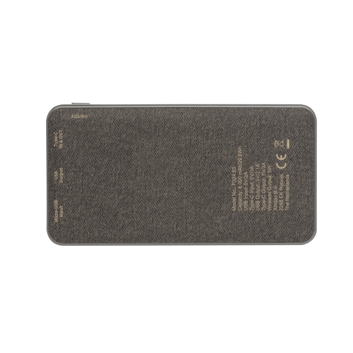 С этим стильным беспроводным внешним аккумулятором с покрытием из полиуретана ваш телефон никогда не разрядится. Энергии полностью заряженного аккумулятора класса А хватит, чтобы зарядить ваш смартфон до четырех раз, используя беспроводную зарядку. Если ваш телефон не поддерживает функцию беспроводной зарядки, то вы сможете подзарядить его через USB или Type-C порт. Напряжение на входе Type-C: 5V/3A; micro USB: 5V/2A. Напряжение на выходе Type-C: 5V/3A, USB: 5V/2A. Беспроводное напряжение на выходе: 5V/1A 5W