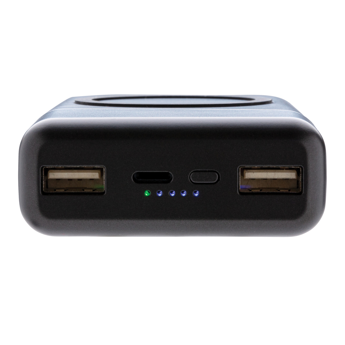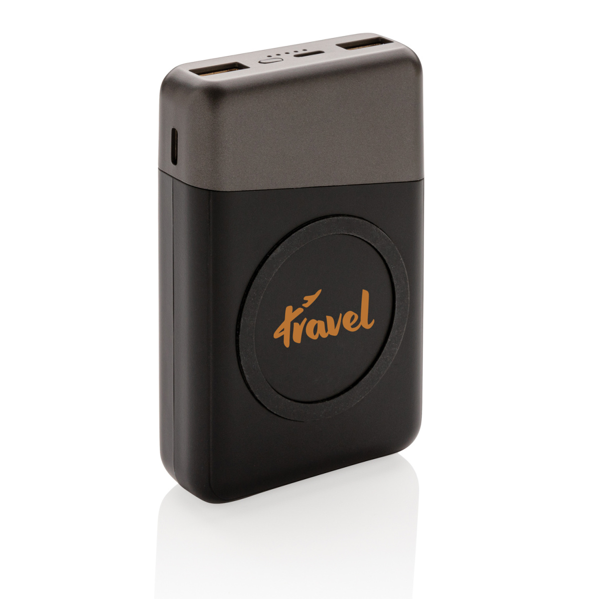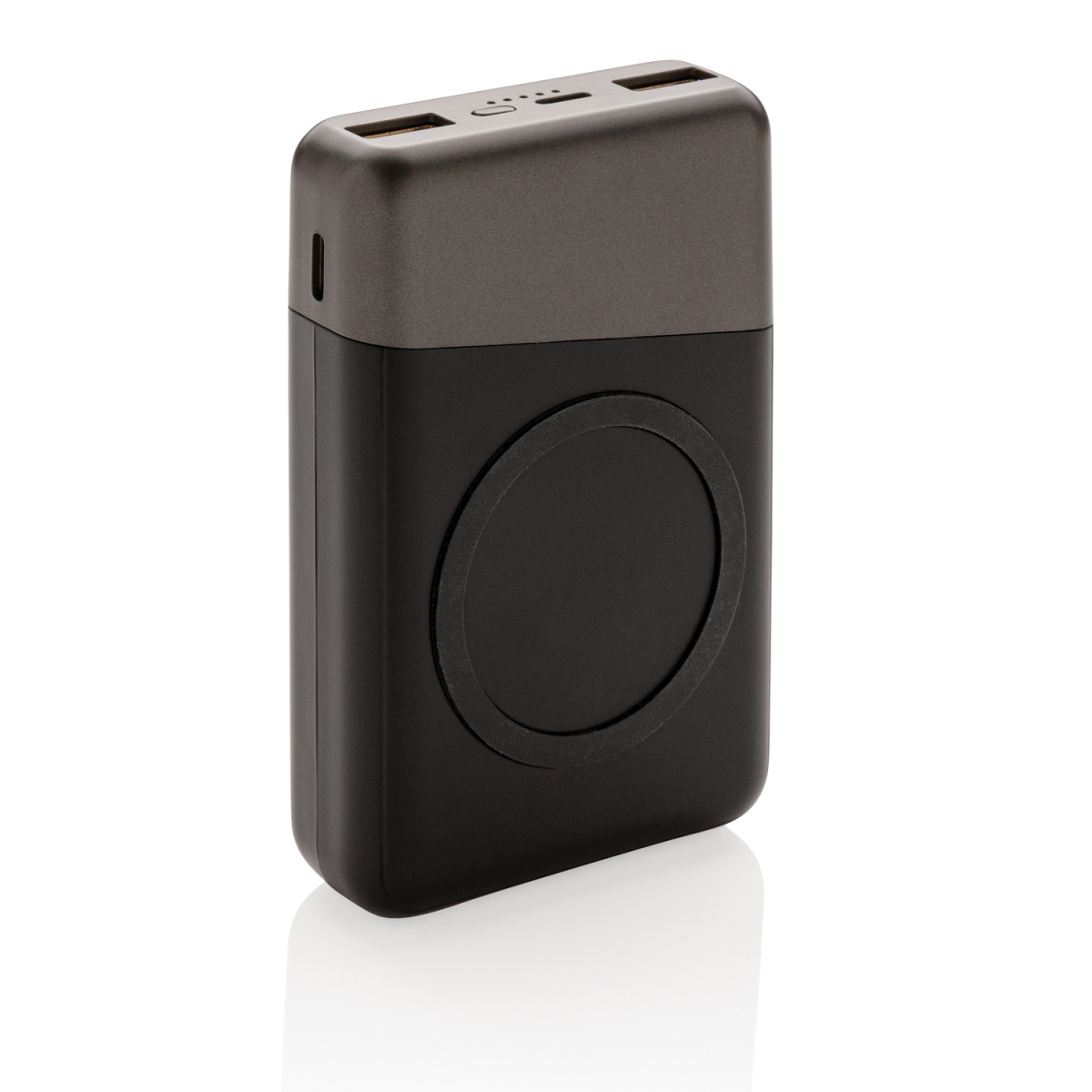 В этом внешнем аккумуляторе есть все, что вам нужно. Внешний аккумулятор карманного размера можно заряжать без проводов, просто разместив его обратной стороной на док-станции с функцией беспроводной зарядки. С другой стороны, лицевую часть можно использовать для беспроводной зарядки (5W) ваших мобильных устройств, просто расположите ваш девайс на поверхность зарядки с силиконовым кольцом. Функция беспроводной зарядки подходит смартфонам на Android последнего поколения, а также iPhone 8 и выше. Для зарядки при помощи кабеля предусмотрены 2 USB порта и 3 разъема: Micro/Type C вход/ Apple Lightning. Устройство оснащено долговечным литий-полимерным аккумулятором 10000 мАч высокой плотности класса A. 2 USB порта: 5V/2A. Micro/Type C Вход: 5V/2A; Lightning Вход: 5V/1A. Беспроводной выход 5V/1A.