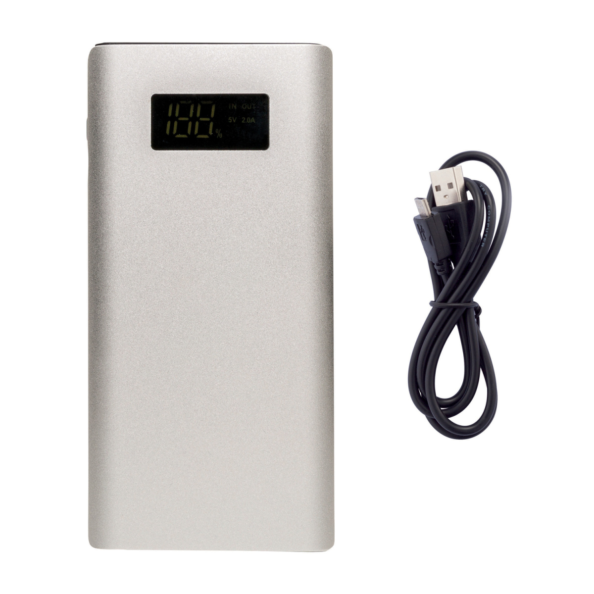 Алюминиевое зарядное устройство с литий-полимерным аккумулятором емкостью 10 000 мАч дополнено удобным LCD-дисплеем, на котором отображается уровень заряда. На устройстве предусмотрено два USB-выхода, один из которых, порт Quick Charge 3.0, предназначен для быстрой зарядки мобильных устройств. Напряжение на выходе - DC 5V/3A, 9V/2A, 12V/1.5A, на входе - 5V/3A. В комплекте идет кабель micro-USB.