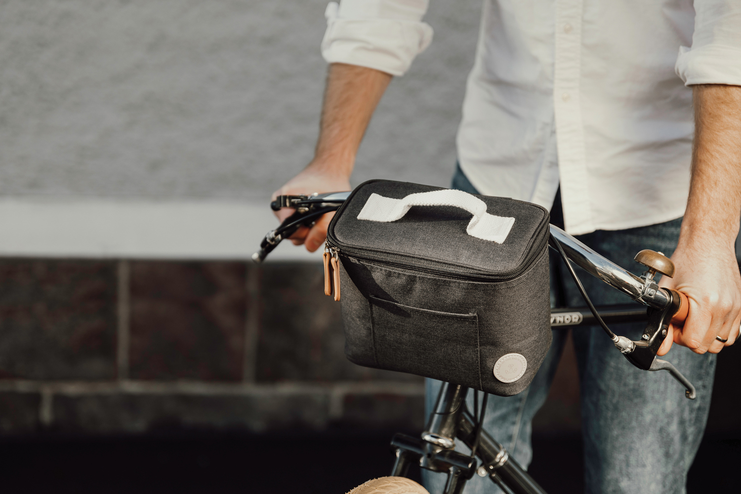 На задней части сумки расположены застежки, с помощью которых ее легко закрепить на руле велосипеда.