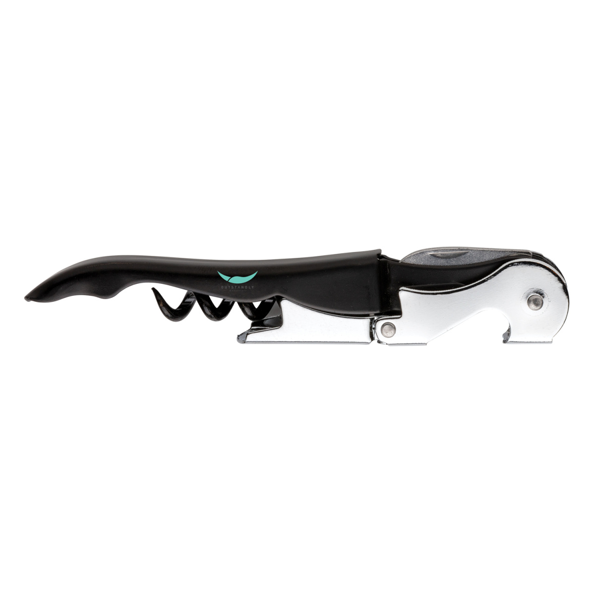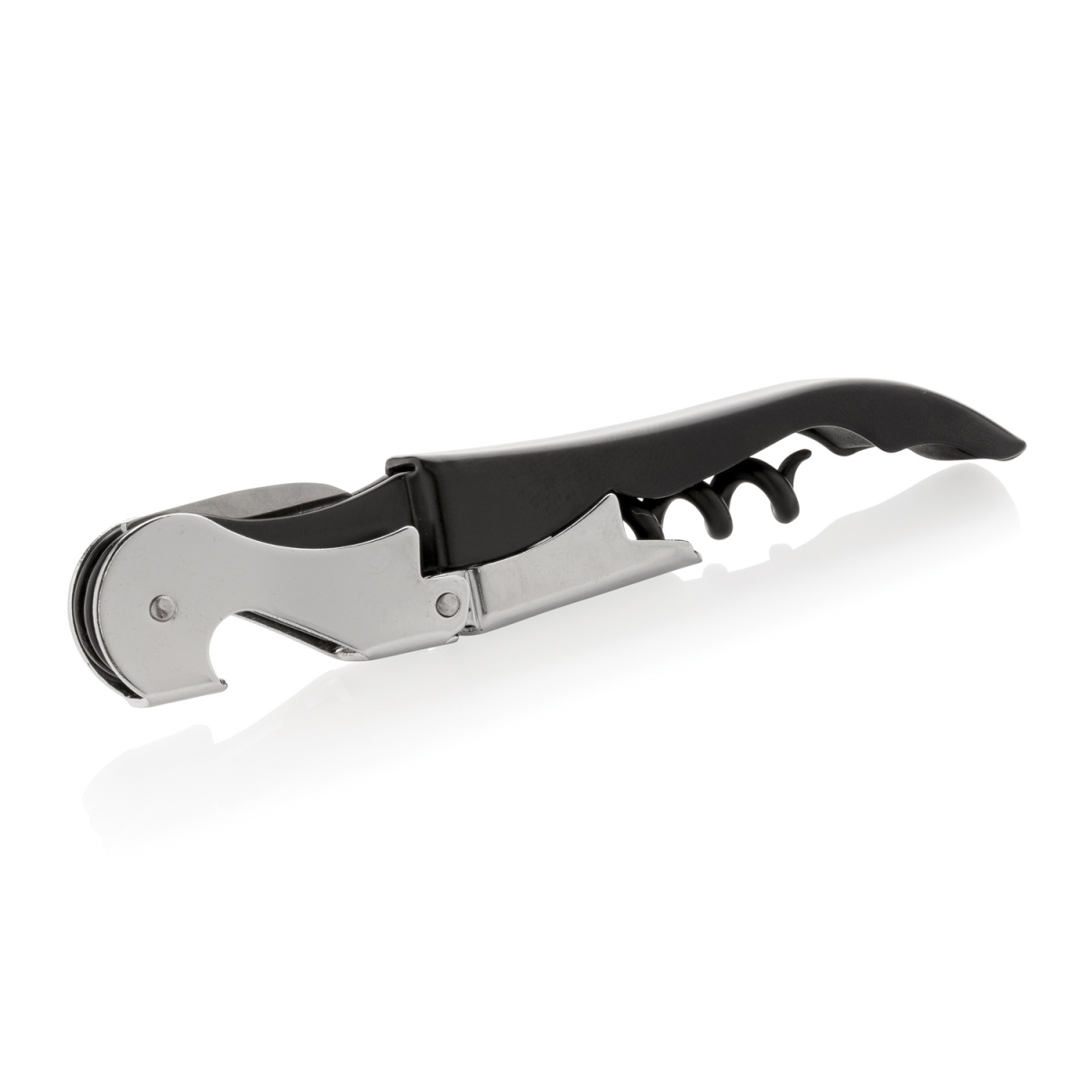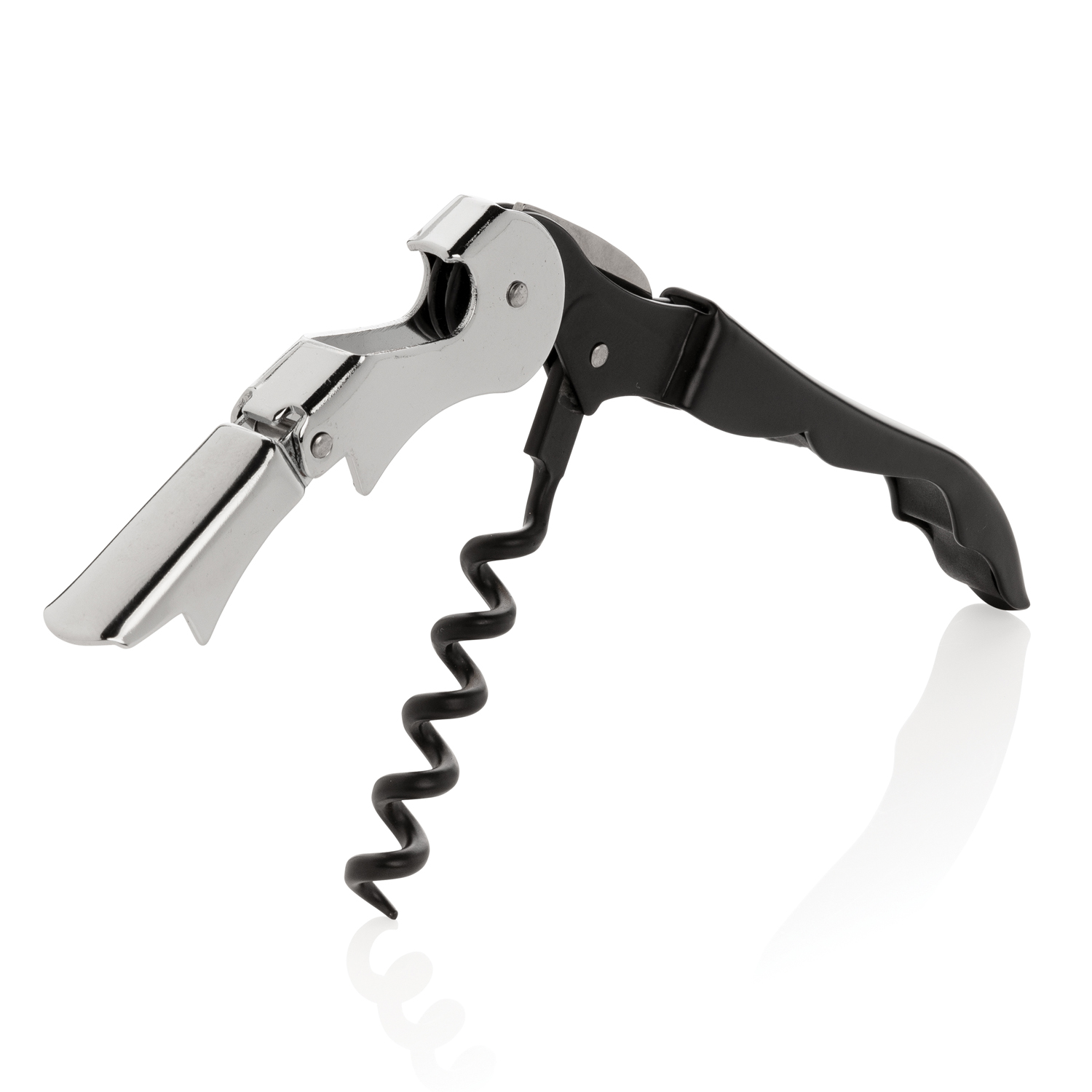 Классический дизайн штопора, который также предусматривает наличие лезвия для срезания фольги и профессиональную двухступенчатую систему открывания пробок. Упакован в подарочную коробку.