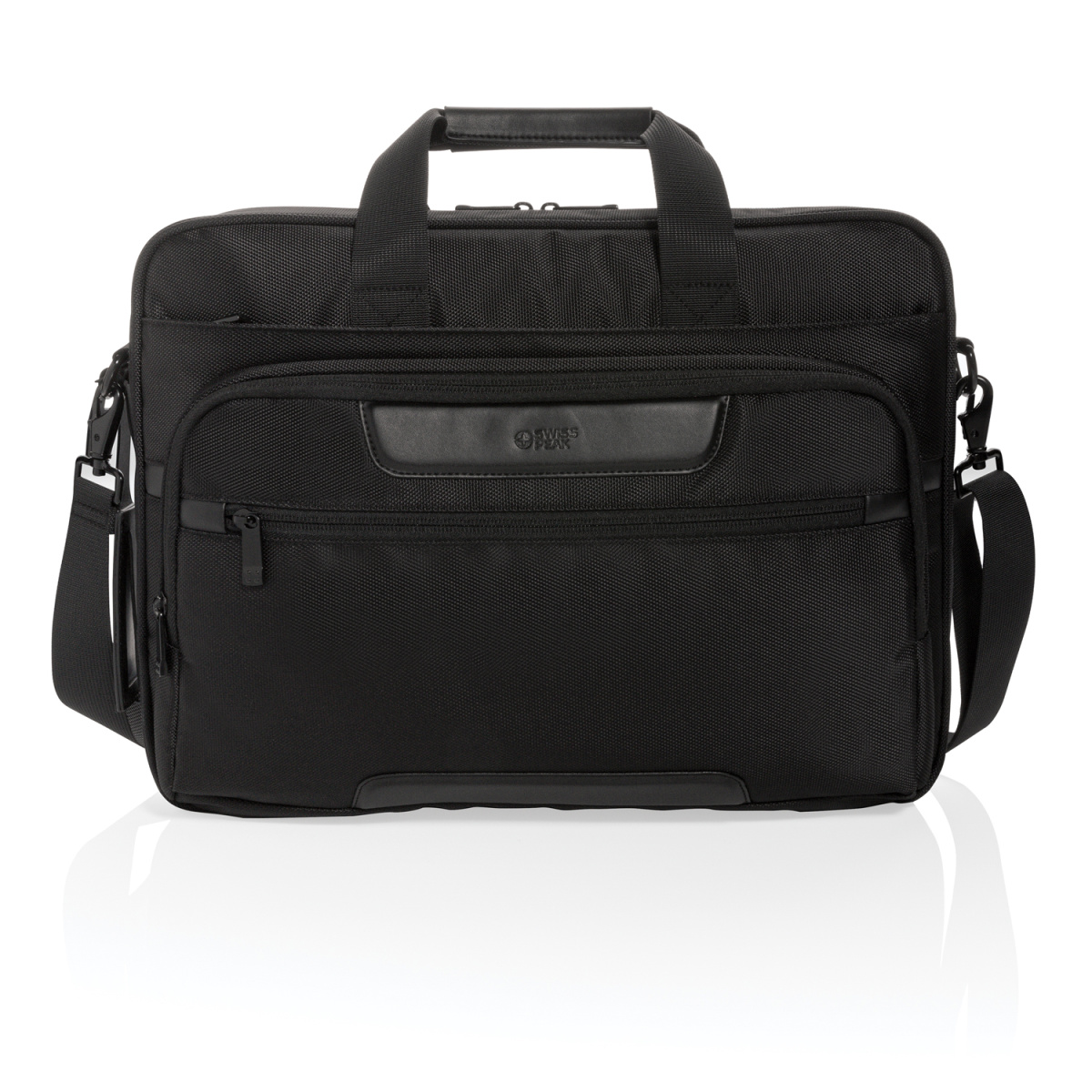Сделайте свою поездку на работу проще с этой сумкой для ноутбука. Сумка изготовлена из прочного полиэстера 1680D с отделочными деталями из качественного PU. Сумка для ноутбука диагональю 15.6” от бренда Swiss Peak дополнена удобными отделениями для планшета, прочих мобильных гаджетов и мелочей, которые всегда должны быть под рукой. Подключите к специальному кабелю внутри свое зарядное устройство и вы сможете, используя USB-порт на сумке, заряжать гаджеты на ходу. Также в ней предусмотрен специальный карман с RFID-защитой, петли для ручек и съемная багажная бирка.