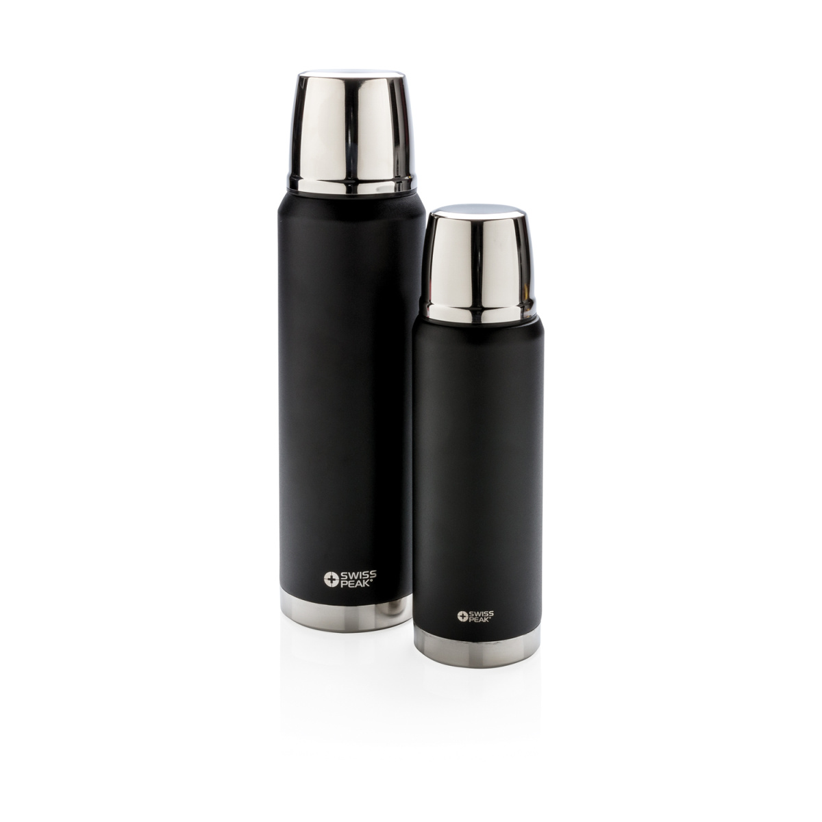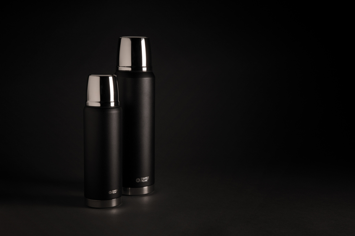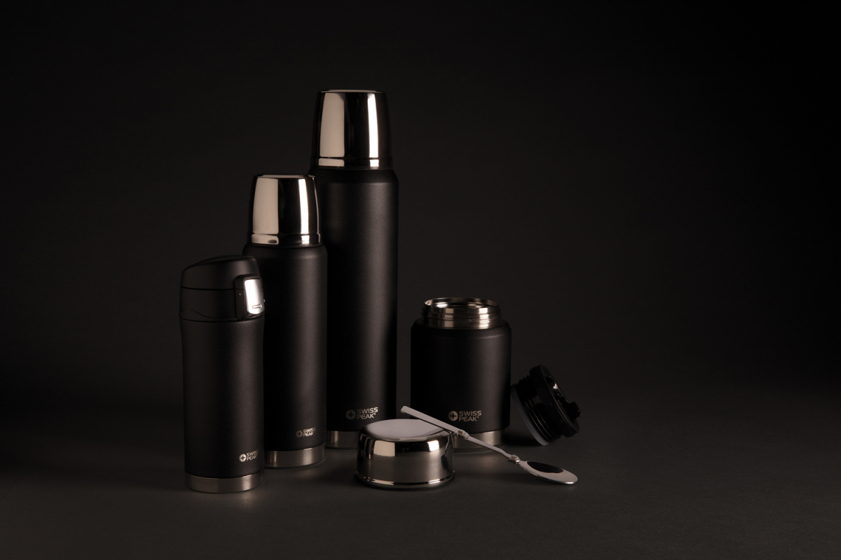 Коллекция Swiss Peak Elite с вакуумной изоляцией и двойными стенками из нержавеющей стали 18/8. Долговечное внешнее покрытие черного цвета, которое не облезет и не потрескается. Внутренние стенки покрыты медью, что обеспечивает максимальную проводимость для того, чтобы напитки сохраняли тепло до 8 часов или оставались холодными до 24 часов! Ручная мойка, защита от протекания. Объем 500мл.
